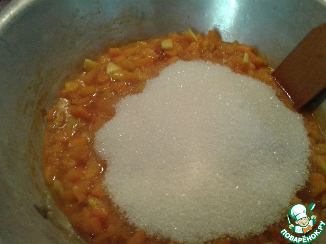 Ставим на средний огонь и варим, иногда помешивая, пока не начнет выделяться сок ( абрикос начинает таять ).