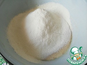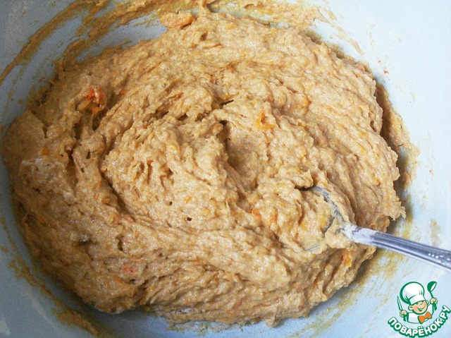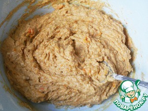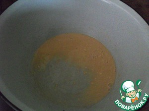 • Тесто получается жидковатым. Разделить его на 2 равные части.