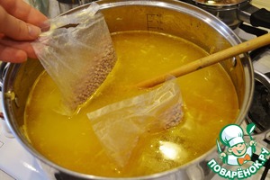 Почему именно в пакетиках - обещала рассказать - думаю пришло время. Дело в том, что я считаю - надо доставать гречку из кастрюли перед тем, как добавить в щи щавель - гречка должна остаться нежной, но при этом пропитаться ароматами специй и овощного бульона - поэтому замечательно подойдет крупа в пакетиках, которую в любой момент можно убрать - при этом она отдаст весь свой аромат бульону!