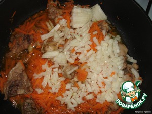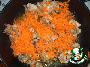 Морковь натереть на крупной терке и добавить к окорочкам.
