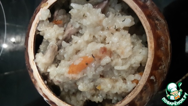 В каждый горшочек добавить по 2 ст. ложки риса. -