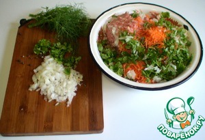 Мясо пропустить через мясорубку вместе с мякотью от овощей.
