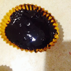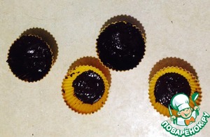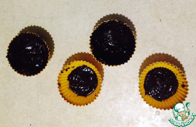 Силиконовые формочки для кексов смажем топленым шоколадом. Есть 2 способа как это сделать. Первый - смазать формочку полностью ( стенки и основу), а второй наполнить формочку на 1/3 шоколадом.