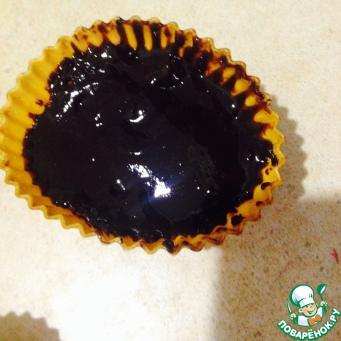 Достаем формочки с морозилки. Те, что были обмазаны полностью, заполняем доверха черничной начинкой, оставляя 1 см для шоколадной "крышечки", а те что были заполнены на 1/3 заполняем начинкой на 2/3 и отправляем еще на 10 минуток в морозильник.
