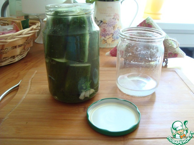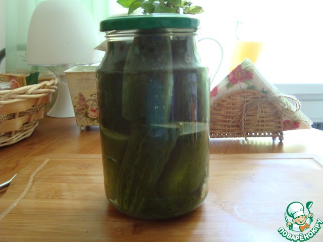 Накрываем крышкой, но не заворачиваем. Даём остыть в естественных условиях 2 часа. Можно есть!!! Ну а если вы ещё поставите в холодильник на пол-часика, то огурцы будут холодненькими и ещё вкусней!