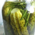 Как я делаю малосольные огурцы: Эти огурцы я делаю лет 25. "Огуречки на разок" -я их бы назвала. Делаются быстро и съедаются сразу. Да их и не нужно долго хранить, а-то пересолятся. Эти огурцы я делаю всегда в банке 1 л. Готовы они уже через 2 часа, а если ещё оставить на часок в холодильнике, то вообще очень-очень вкусные становятся. Делаю я их круглый год, зимой из магазинных, длинных-тоже не плохо получается!
