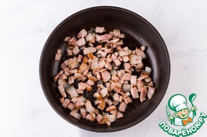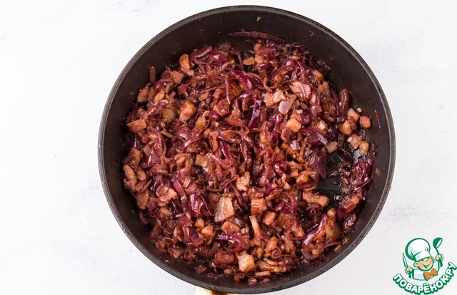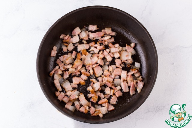 2. Отложить бекон на тарелку, вытопившийся жир не сливать.