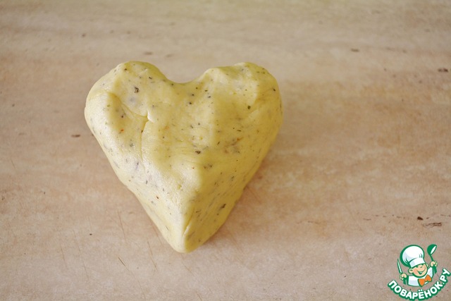 Вымешиваем все хорошенько, чтобы получилось эластичное тесто, которое не будет липнуть к рукам и, завернув в пленку, убираем его в холодильник минут на 30.