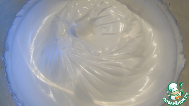 Постепенно добавляем сахарную пудру и взбиваем до устойчивых пиков