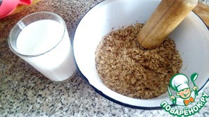 Ядра грецких орехов измельчить удобным для вас способом (я лёгких путей не ищу - истолкла толкушкой),