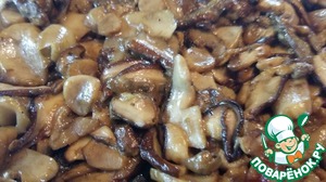 Грибы порезать на ломтики и выложить на сковороду к луку. Посолить, поперчить и приправить прованскими травами. Для выпаривания жидкости сначала жарить на большом огне, затем убрать его до минимума и томить грибы в масле 20 - 30 минут. Вот и все, грибы полностью готовы. При дальнейшем употреблении их уже не надо доводить до вкуса.