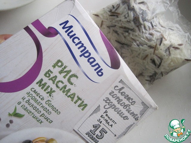 • Рис соединяем с мякотью рыбы и кабачка, солим, добавляем приправу и перемешиваем.