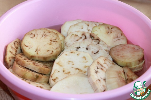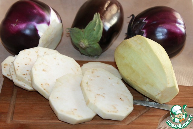 Баклажаны вымыть, очистить и нарезать кружочками.