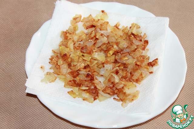 Лук очистить, нарезать кубиком и обжарить в масле до золотистого цвета.