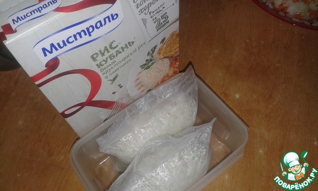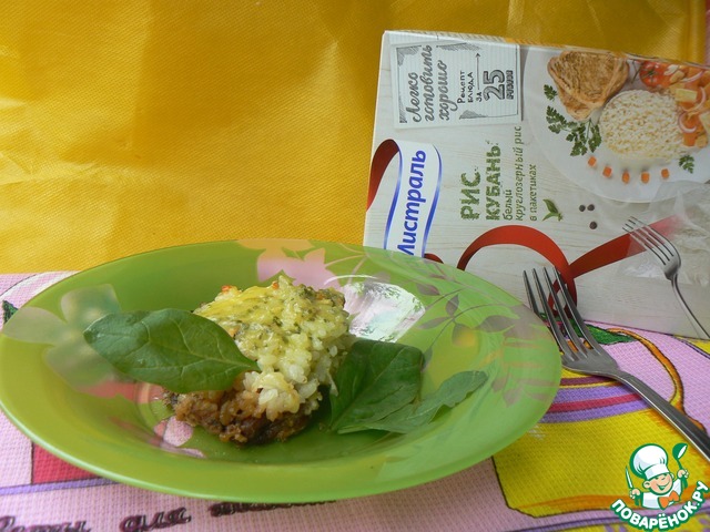 Ингредиенты для «Мясо под рисово-сырной шубой»: