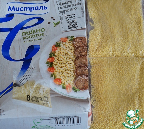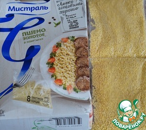 Пакетик пшена от ТМ Мистраль кладем в подсоленную воду и варим 25 минут.