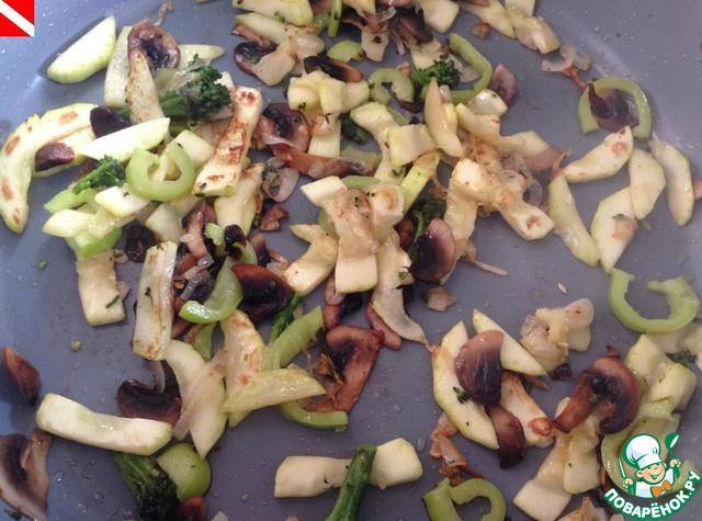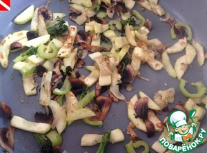Слегка поджарить, но так, чтобы овощи не развалились.