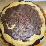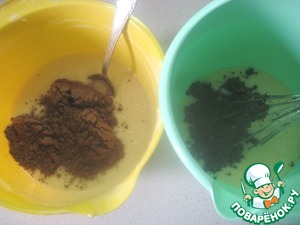 Сверху на шоколадное - мятное и поверх мятного теста оставшуюся часть шоколадного.