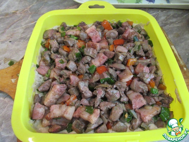 Нужно, чтоб вытопился жир и печень с овощами получили восхитительный копченый вкус. -