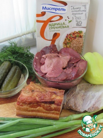 Ну очень гречневый пирог! С нежнейшей печенью индюшки, беконом и пряными овощами. В горячем виде рекомендую подать его с огуречно-майонезным соусом, а в холодном - с чашечкой горячего сладкого чая... Я люблю подобные блюда - это и завтрак, и обед, и ужин. Очень удобно для дачи.