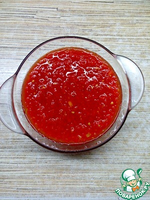 Помидор очистить от кожицы и перебить на блендере или мясорубке.