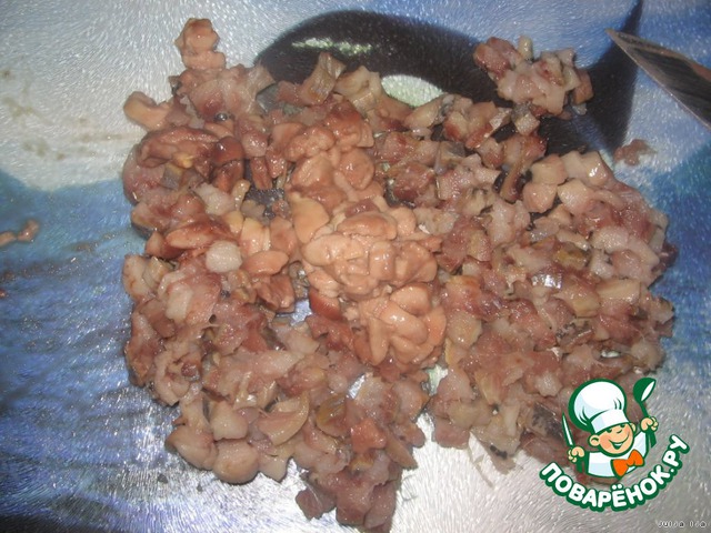 Селёдочку чистим, удаляем все внутренности (если есть икра или молоки их можно тоже использовать), косточки. Мелко нарезаем.