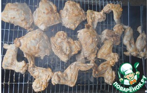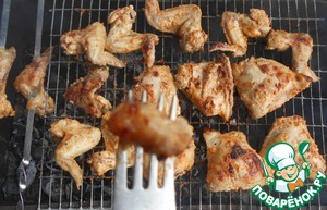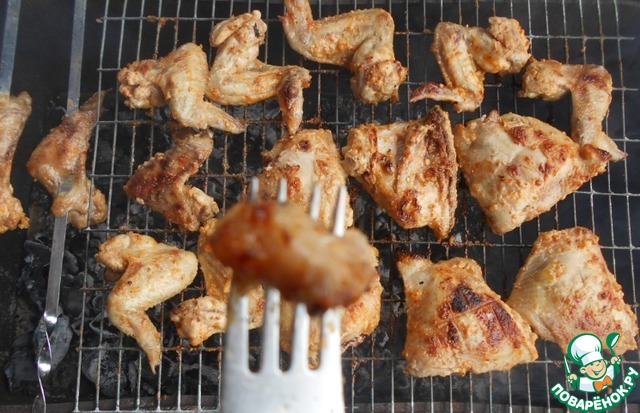 Курочка на огне, замаринованная с чесноком и рыжиковым маслом