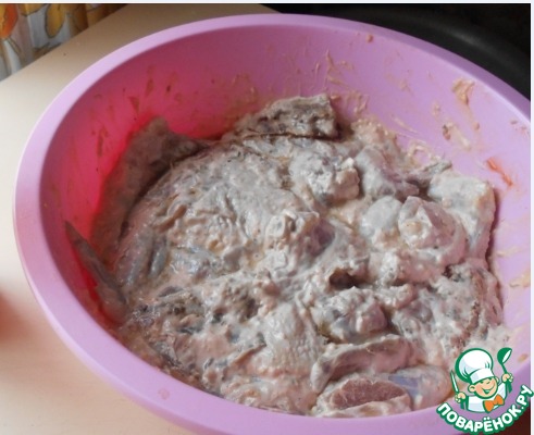 • Данной смесью, обмазываем курицу и укладываем в чашку, для того, чтобы она пропиталась маринадом