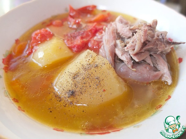 Чорпа, шорпо, сорпа. Шурпа — заправочный суп или мясной бульон, получивший распространение на Востоке, где он известен под различными наименованиями: шурпа, чорпа, шорпо, сорпа, наконец, в Молдавии и на Балканах, где она была заимствована, чорба. © wikipedia Рецепт для духовки