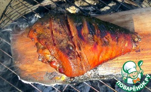 Чтобы предотвратить сильный изгиб досок во время приготовления поместите гриль-доску лицевой стороной вниз на решетку мангала на 3-5 минут, пока от доски не пойдет дым.