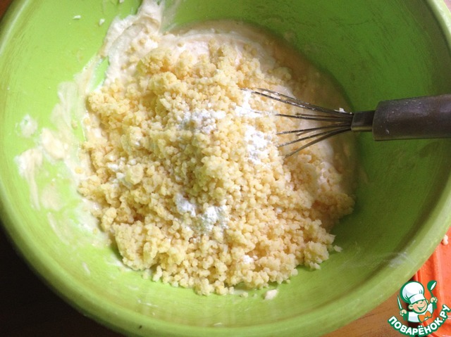 Добавить протёртый через сито творог. (я не протирала, у меня был пастообразный творог).