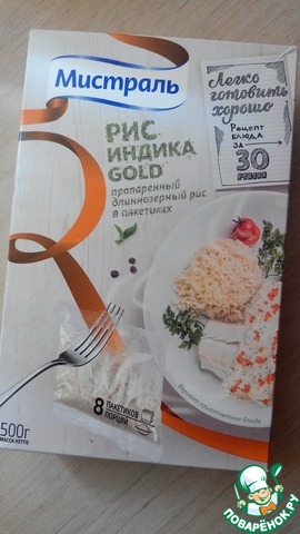 Для начала отвариваем заранее рис. У меня рис Индика gold ТМ Мистраль. Он рассыпчатый, а для этого пирога именно это и надо.