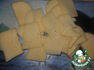 Нарезаем оставшуюся брынзу тонкими ломтиками.