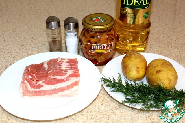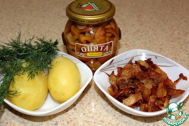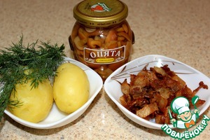 Ингредиенты для «Салат картофельно-грибной со шкварками»: