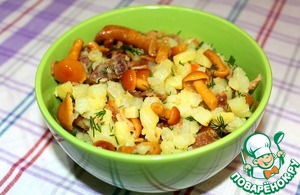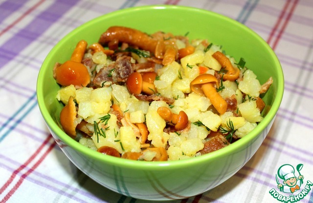 Рецепт «Салат картофельно-грибной со шкварками»: