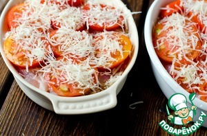 Помидоры порезать на кружочки и уложить их на рыбу.