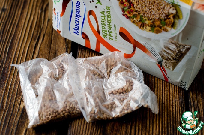 Для этого рецепта нам понадобится гречка от ТМ Мистраль. Ее необходимо отварить до готовности согласно инструкции на упаковке.