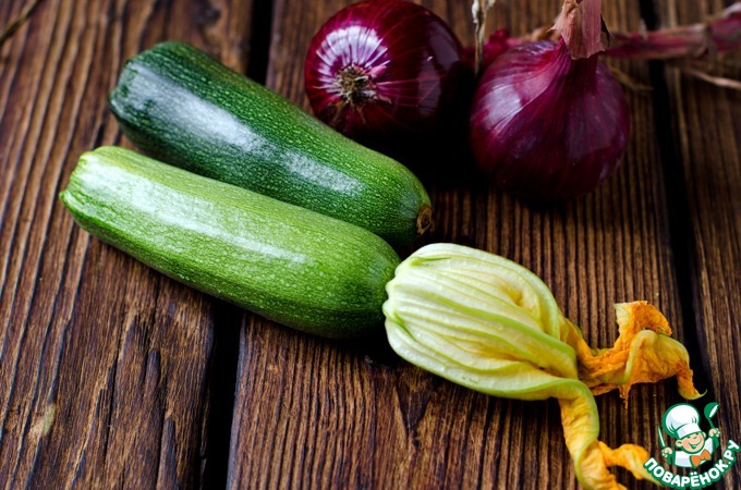 Для начинки нам понадобятся цуккини и красный лук. Вот такие красавцы у мня выросли.