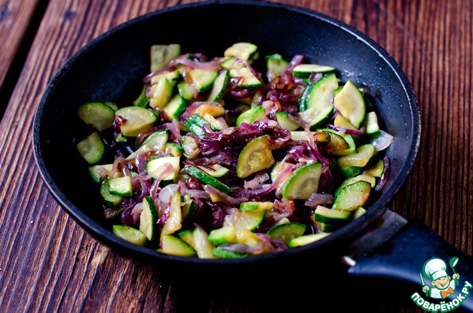 Добавить к нему цуккини и тоже обжаривать до подрумянивания.