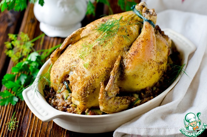 Рецепт «Курица, фаршированная гречкой и цуккини»: