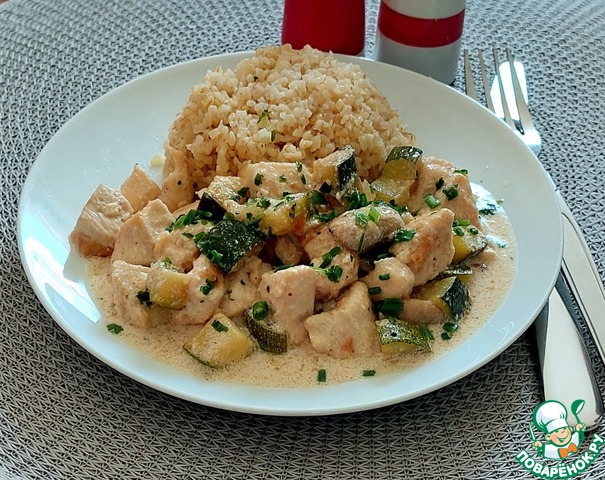 Ингредиенты для «Кабачки с курицей в сметане»:
