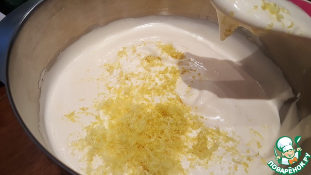 Добавить в яичную смесь цедру и сок лимона и аккуратно перемешать.