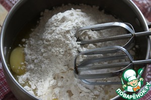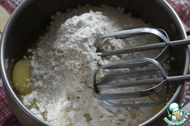 В кастрюльке все смешивается: яйца, сгущенка, мука, ванилин, гашеная сода.