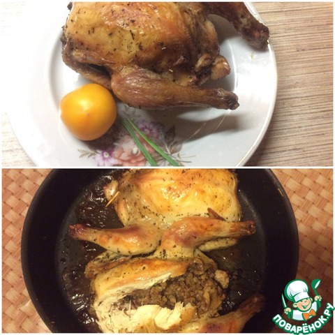 Огромное спасибо за рецепт! Руководствовалась им, но муж с сыном категорически не захотели чечевицу, даже и с картофелем( не успела скрыть, пришли на кухню в момент вытаскивания цыпляток корнишонов из морозилки ). Сделала с гречкой+сушёные подберёзовики( на фото в разрезе готовый кур )В общем- вкусняцко! Аджичка придала кожице особый аромат.