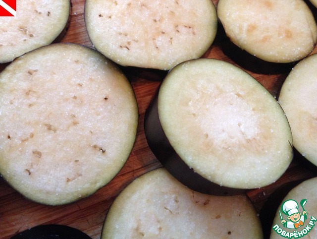 • Цветную капусту разобрать на соцветия, баклажаны нарезать кружочками, посолить, оставить на 15-20 минут, затем промыть водой и обсушить.