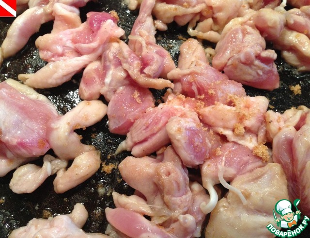В процессе жарки я посыпаю курицу приправами - так получается ароматнее (смесь кардамона, кориандра, кумина и молотой паприки). Количество - по вкусу.