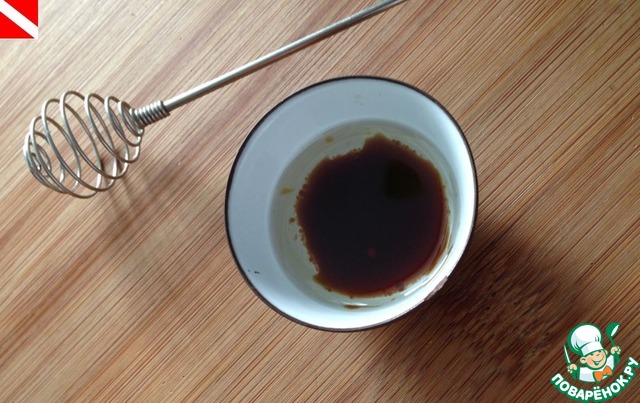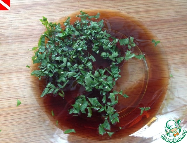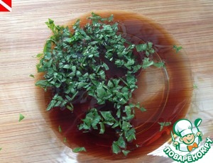 Смешать соевый соус, 1 ст. ложку оливкового масла и нарубленную петрушку.