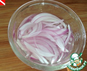 В столовый уксус всыпать 1/2 ч. л. сахара, размешать до его растворения и положить в него лук для маринования. -