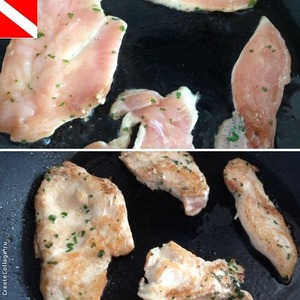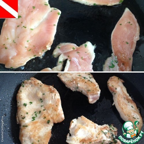 Замаринованное филе курицы обжарить на хорошо разогретой сковороде с обеих сторон по 3-4 минуты.