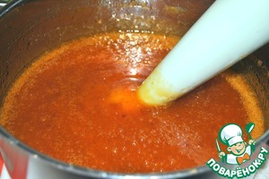 6) Затем измельчаем получившееся варенье блендером до однородного состояния. Ставим на плиту, доводим до кипения, не забываем помешивать. Кипятим 5 мин. Затем разливаем по стерильным баночкам.